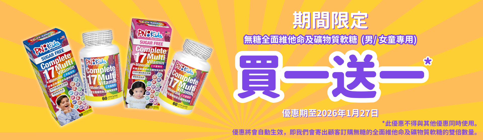 在PNKids,我們深信健康的基礎來自於優質的營養攝取。我們的產品配方專為香港的孩子們設計,涵蓋多種重要的營養素,當中不少家長推薦的皇牌產品「全面兒童維他命及礦物質軟糖」蘊含17種兒童成長必需的維他命及礦物質,除了維他命A、維他命B雜、維他命C、維他命D,更含維他命E、膽鹼、銅、肌醇、碘、鎂和鋅,而且不添加糖分,是香港市面上營養最全面的營養補充軟糖,深受2-12歲兒童的家長歡迎及推薦。我們的每一款產品都經過專家團隊精心研發,旨在為孩子們提供最佳的健康選擇,讓家長們可以放心讓孩子享用。
